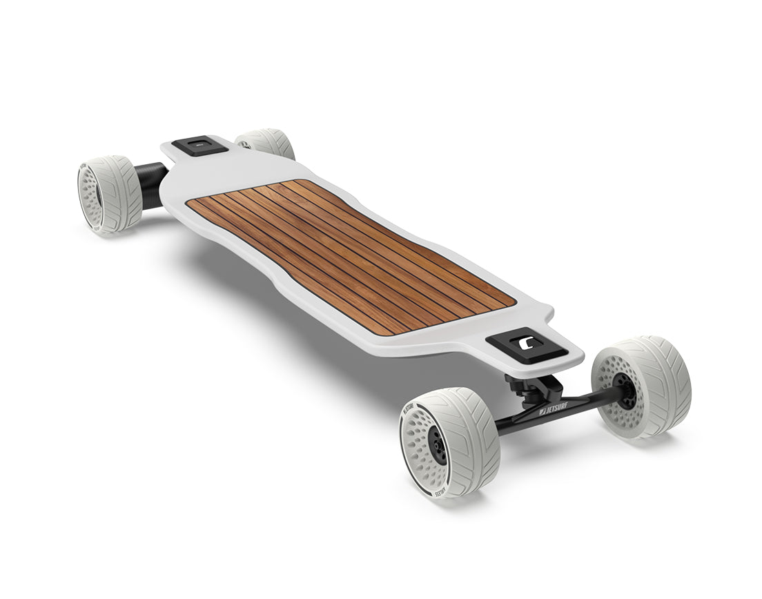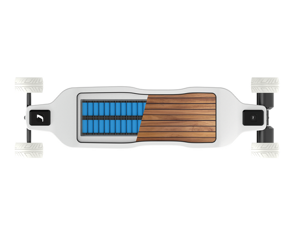 Spojení prémiových materiálů s vyspělou technologií znamená nekompromisní kvalitu. Celokarbonový deck, je zdůrazněn integrovaným padem z pravého teakového dřeva, který dodává dotek elegancie. K tomu podsvícené logo vpředu a bílá kola udávají nový designový směr v odvětví drobné elektro-mobility